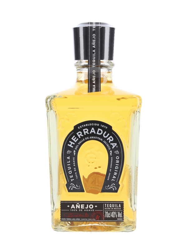 A bottle of Herradura Tequila Añejo from Mexico. This was made from 100% agave and aged for 25 months.