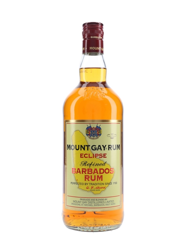 A litre bottle of Mount Gay Eclipse Refined Barbados Rum. This was imported to France by Remy Cointreau.