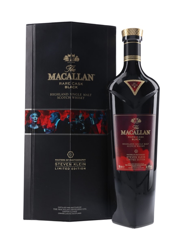 A limited edition bottle of The Macallan Rare Cask Black, made from peated malt matured in first fill sherry casks. This was created in collaboration with photographer and film maker Steven Klein as part of the Masters of Photography series.
