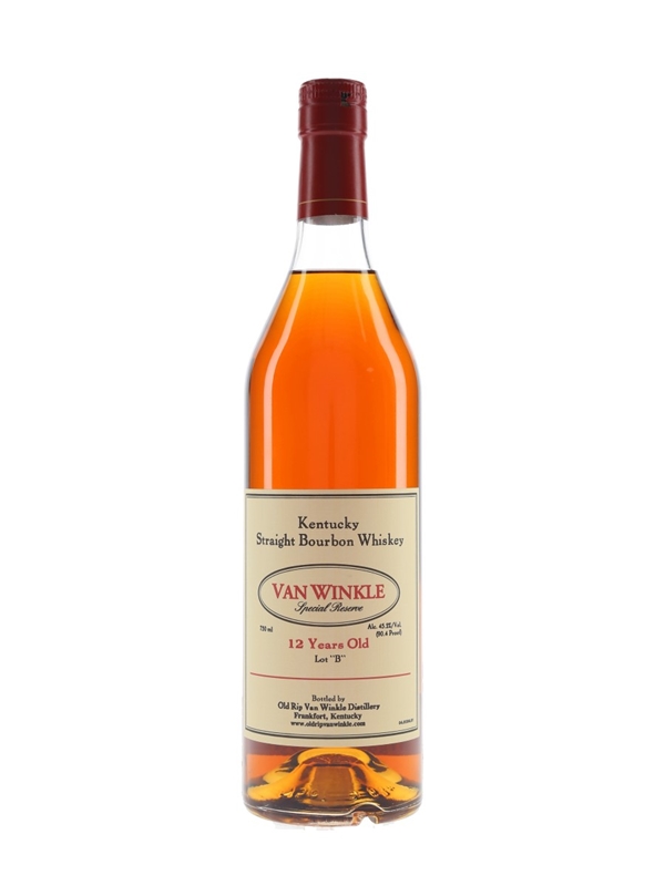 A bottle of Van Winkle 12 Year Old Special Reserve Kentucky Straight Bourbon Whiskey, bottled by Old Rip Van Winkle Distillery, Frankfort. The bottling code indicates this was bottled in 2016.