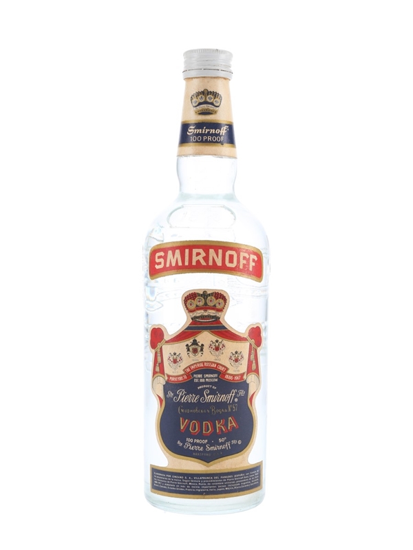 A litre bottle of Smirnoff Blue Label Vodka. This was produced in the United States, bottled for the Spanish market and imported by Cinzano, we estimate in the 1960s.