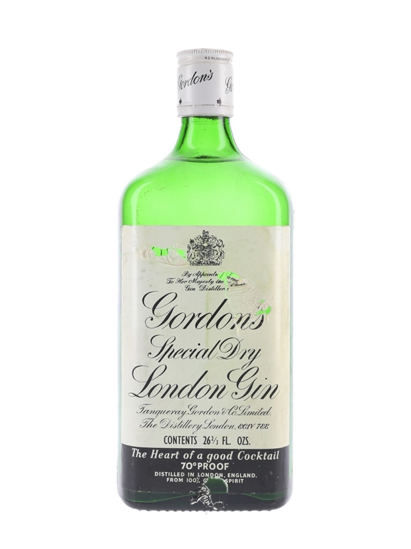 A bottle of Gordon's Special Dry London Gin. This was distilled and bottled by Tanqueray, Gordon & Co. Limited, The Distillery, London. We estimate this was bottled in the 1970s.