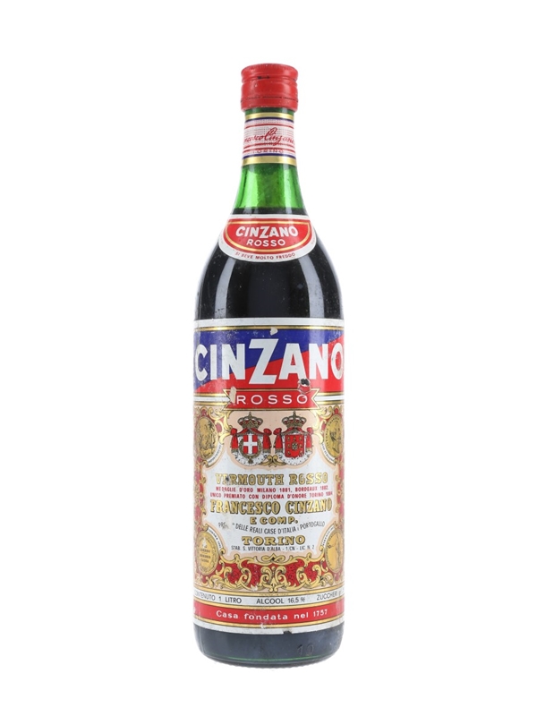 A litre bottle of Cinzano Rosso vermouth. We estimate this was bottled in the 1970s.
