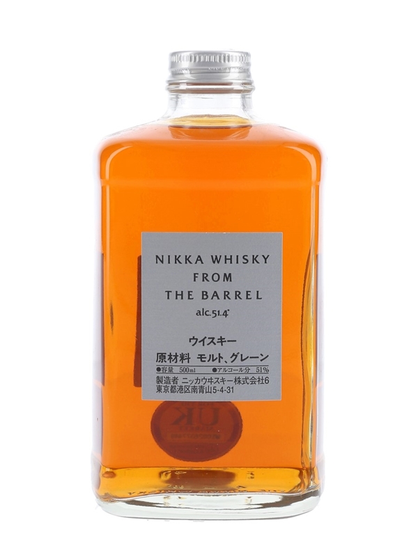 A 50cl bottle of Nikka From The Barrel, a Japanese blended whisky presented in an elegant square bottle.