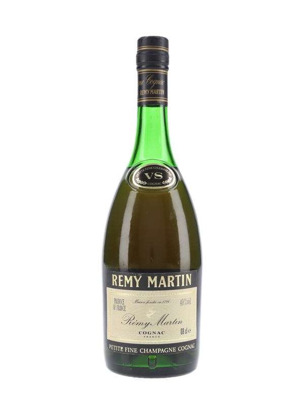 A bottle of Rémy Martin VS Petite Fine Champagne Cognac. We estimate this was bottled in the 1980s.