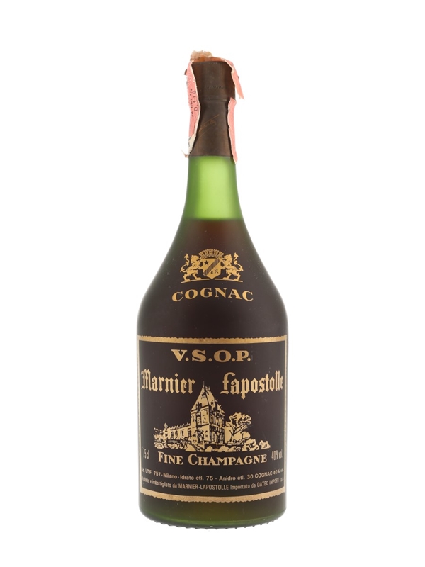 A bottle of Marnier Lapostolle VSOP Fine Champagne Cognac. This was bottled for the Italian market and imported by Dateo.