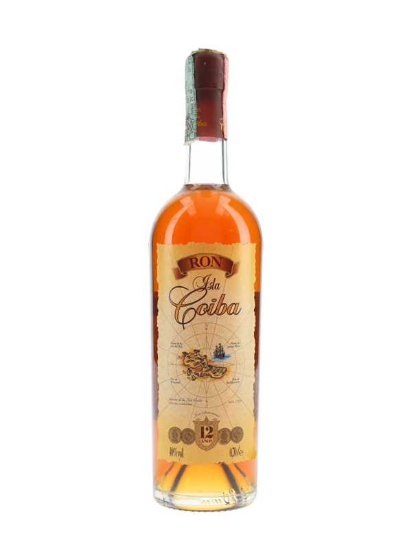 A bottle of Isla Coiba 12 Year Old Rum, produced in Panama by Caribbean Spirits Inc. This was bottled for the Italian market and distributed by Rinaldi.