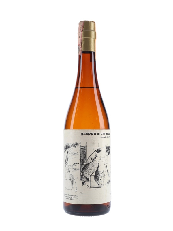 A bottle of Sibona 1979 Grappa Di Carema, produced in Piobesi, Italy.