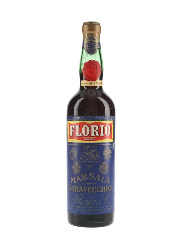 A bottle of Florio Marsala Superiore Stravecchio, produced and bottled by SAVI (Societa Anonima Vinicola Italiana).