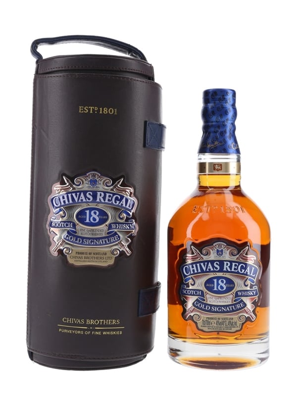 A bottle of Chivas Regal 18 Year Old Gold Signature Scotch Whisky. The bottling code indicates this was bottled in 2009.