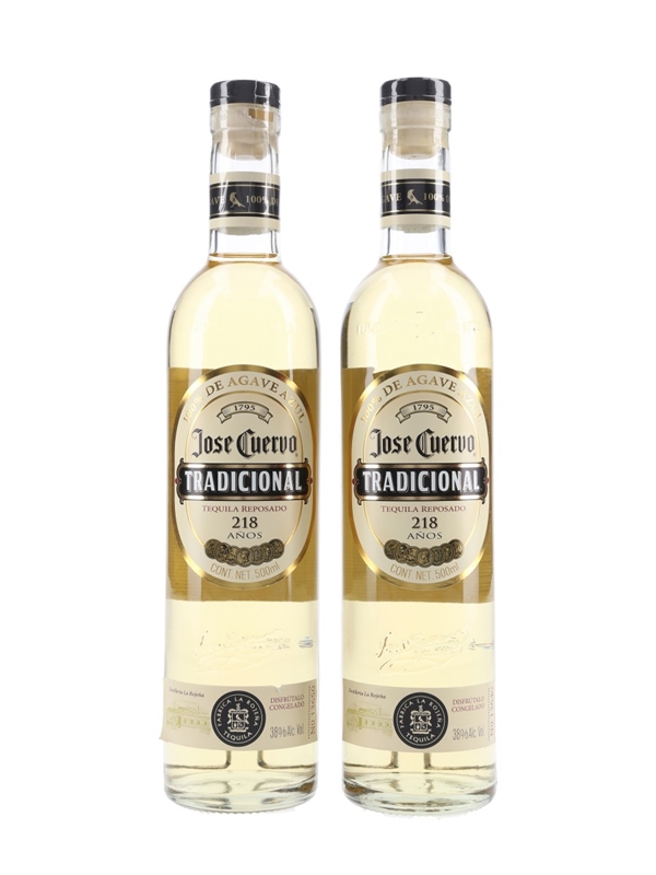 This lot contains two 50cl bottles of Jose Cuervo Tradicional Reposado Tequila made with 100% agave. These were produced at La Rojeña Distillery.