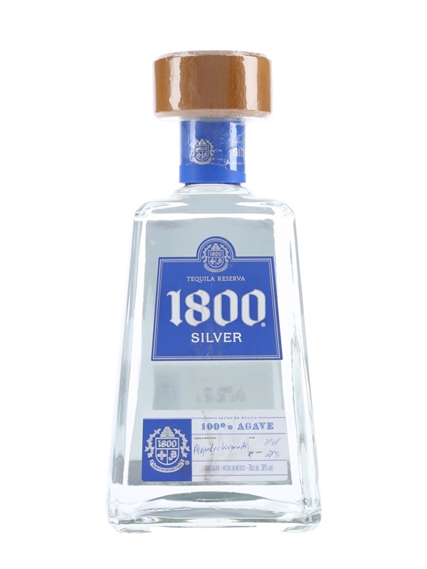 A bottle of 1800 Silver Tequila Reserva, double distilled from 100% blue agave.