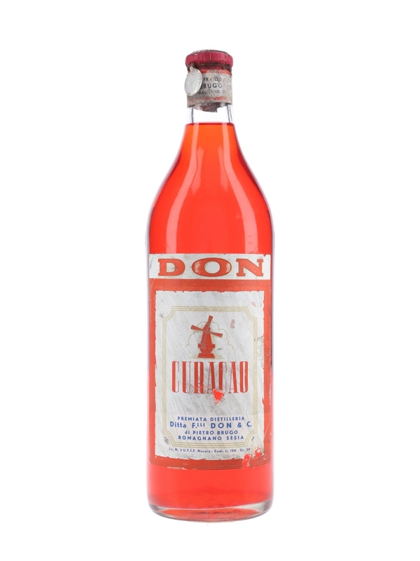A litre bottle of Don Curacao, produced by Flli. Don & C. di Pietro Brugo, Romagnano Sesia, Italy. We estimate this was bottled in the 1950s.