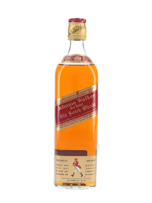 A bottle of Johnnie Walker Red Label Old Scotch Whisky, the world's best selling Scotch whisky. We estimate this was bottled in the 1990s. This was imported to Italy by Wax & Vitale.
