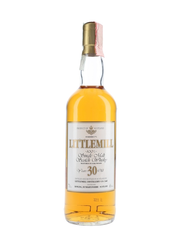 A bottle of Littlemill 30 Year Old Single Malt Scotch Whisky. This was bottled for the Italian market and imported by F&G.