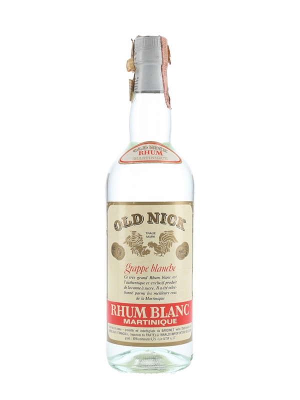 A bottle of Old Nick Rhum Blanc Rhum, produced in Martinique and bottled by Bardinet. This was imported to Italy by Rinaldi, we estimate in the 1970s.