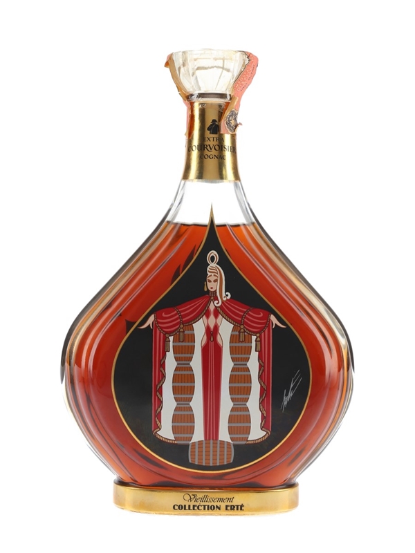 A decanter of the fourth release in Courvoisier's Erté Collection. There are eight decanters in the series. Each was designed by leading Art Deco artist Erté, who died shortly after the first edition was released. Some of the eaux-de-vie used in this range date back to 1892, the year of the artist's birth.