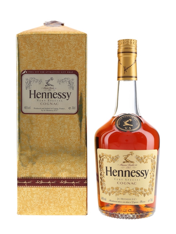 A bottle of Hennessy's Very Special Cognac in the original gift wrapping.