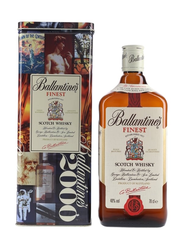A bottle of Ballantine's Finest Scotch Whisky, blended and bottled by George Ballantine & Son Limited. This was bottled for non-EEA sale only and comes in a Ballantine's 2000 gift box