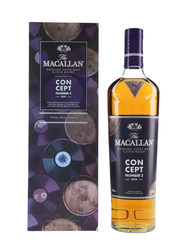A bottle of The Macallan Concept Number 2 Highland Single Malt Scotch Whisky, a 2019 release inspired by the world of music. This was matured in sherry seasoned American oak casks before bottling.