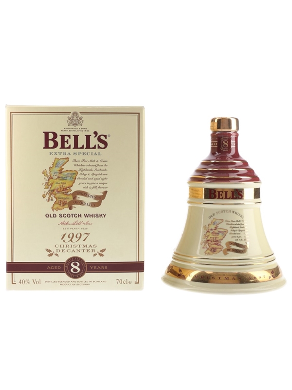 A ceramic decanter of Bell's 8 Year Old Extra Special Old Scotch Whisky released for Christmas 1997, Ingredients of Quality.