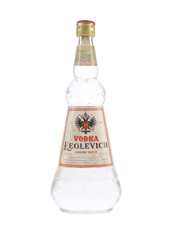 A bottle of Keglevich Vodka produced by Stock in Trieste, Italy. We estimate this was bottled in the 1990s.