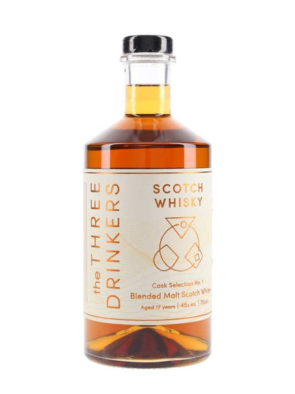 A bottle of The Three Drinkers 17 Year Old Cask Selection No.1 Blended Malt Scotch Whisky.