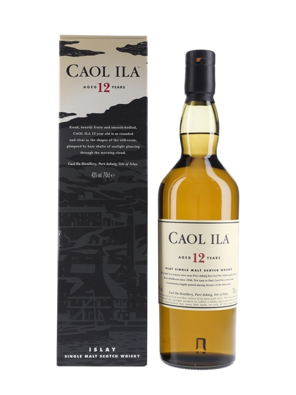 A bottle of Caol Ila 12 Year Old Islay Single Malt Scotch Whisky.