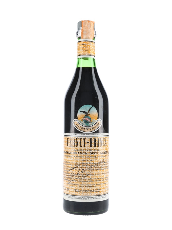 A bottle of Fernet-Branca bitter liqueur. The label states this was bottled in 1982.