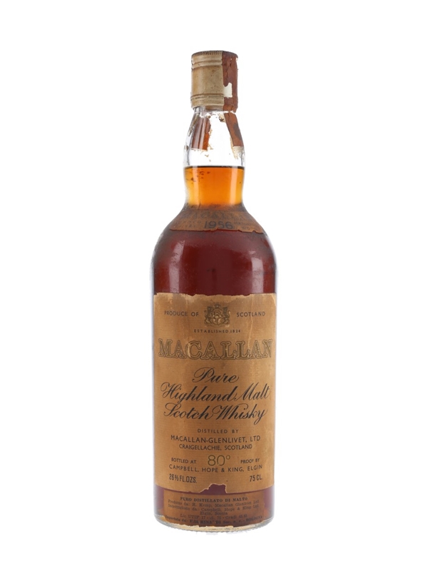 A bottle of The Macallan 1956 bottled by Campbell, Hope & King. This was imported to Italy by Rinaldi, we estimate in the 1970s.