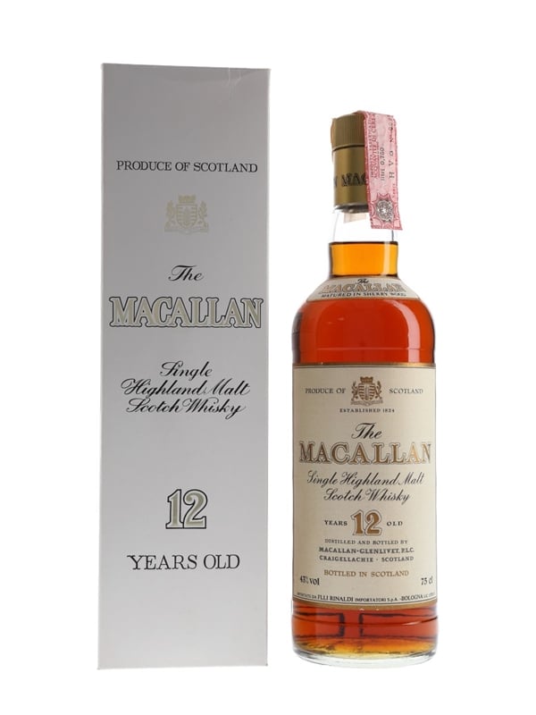 A bottle of The Macallan 12 Year Old. This was imported to Italy by Rinaldi, we estimate in the 1980s.