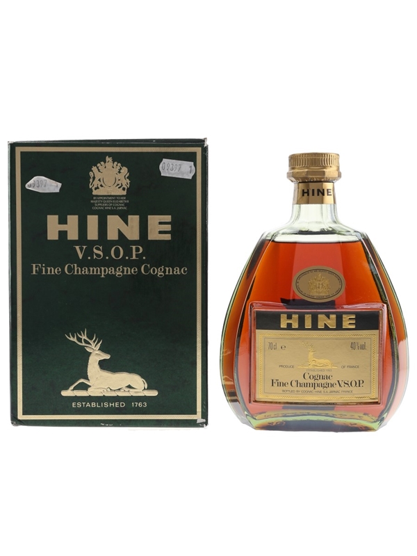 A bottle of Hine VSOP Vieille Fine Champagne Cognac. We estimate this was bottled in the 1980s.