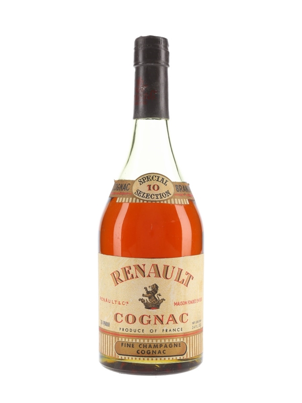 A bottle of Renault 10 Year Old Special Selection Cognac Brandy. We estimate this was bottled in the 1960s to 1970s.