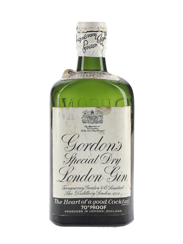 A bottle of Gordon's Special Dry London Gin, sealed with a spring-cap closure. This was distilled and bottled by Tanqueray, Gordon & Co. Limited, The Distillery, London. We estimate this was bottled in the 1950s.