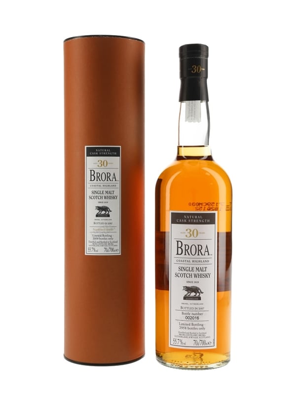 A bottle of Brora 30 Year Old Single Malt Scotch Whisky. This is the sixth Brora from Diageo's Special Releases and was bottled in 2007.
