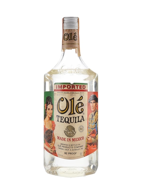 A bottle of Olé Tequila produced and bottled in Mexico. This was imported to Italy by Stock, we estimate in the 1970s.