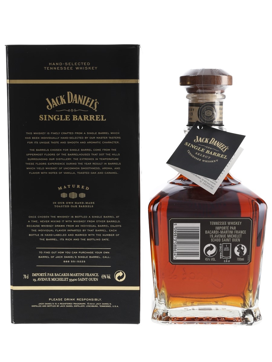 A bottle of Jack Daniel's Single Barrel Select Tennessee Whiskey. This was hand selected and bottled on 28 February 2013. This was imported to France by Bacardi-Martini.