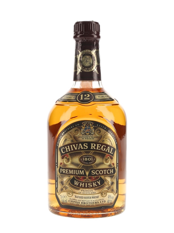 A bottle of Chivas Regal 12 Year Old Blended Scotch Whisky. We estimate this was bottled in the 1990s.