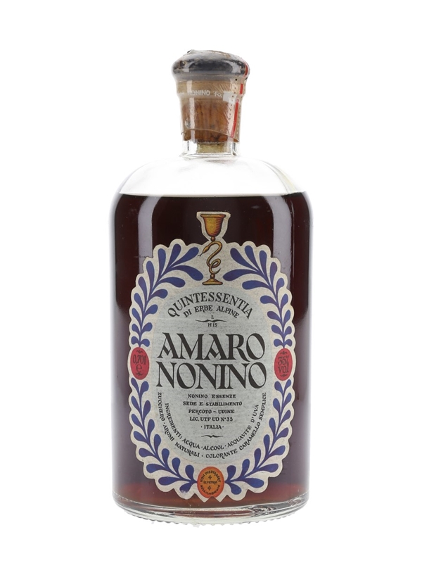 A bottle of Amaro Nonino Quintessentia liqueur produced in Italy. We estimate this was bottled in the 1990s.