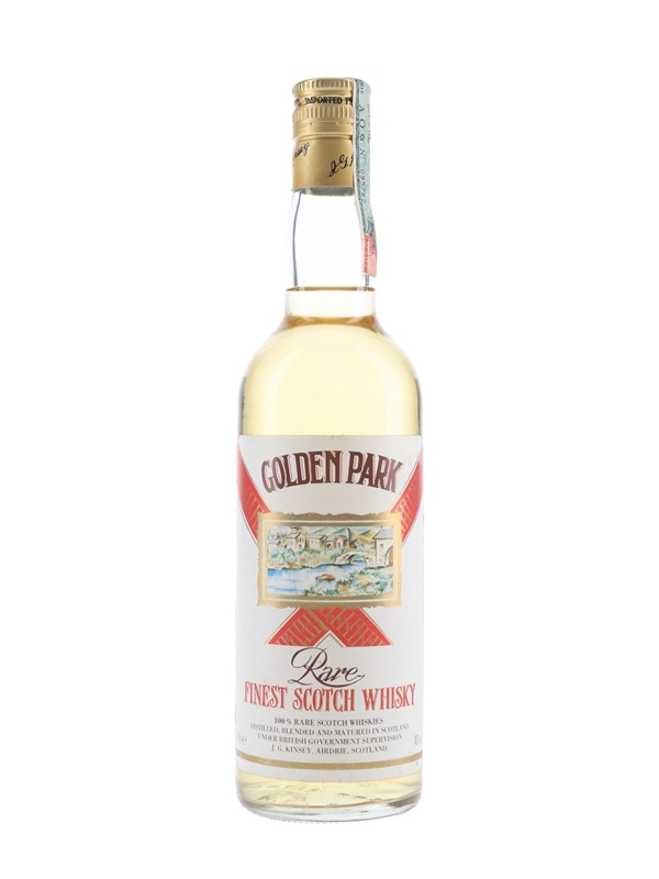 A bottle of Golden Park Finest Scotch Whisky. This was produced in Scotland and bottled in Italy under supervision of J G Kinsey, we estimate in the 1990s.