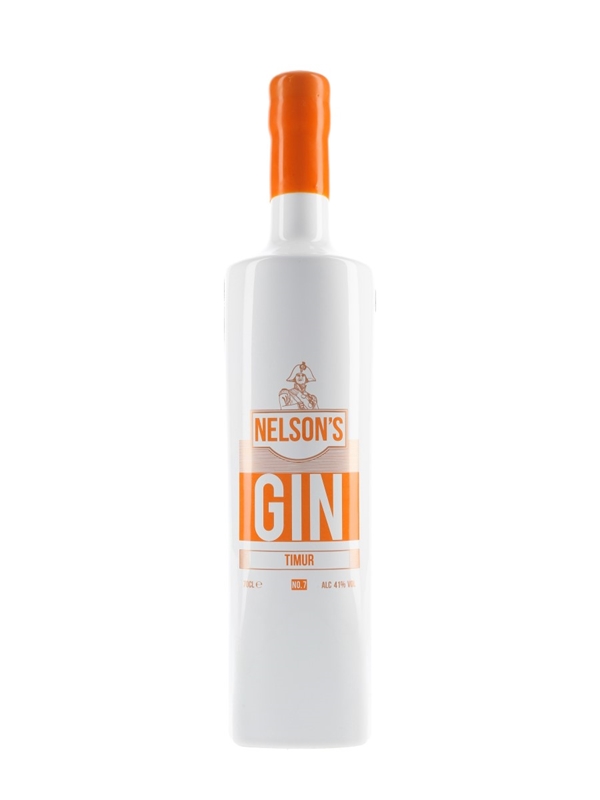 A bottle of Nelson's Gin Timur No.7 produced in England. In additional to Nelson's usual botanicals, this expression includes Timur peppers from Nepal.