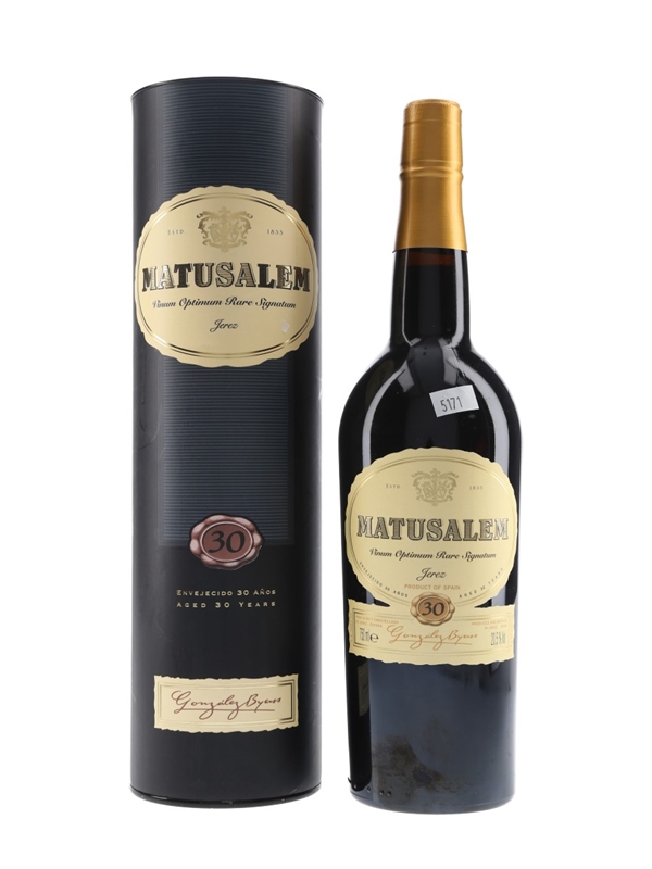 A bottle of Gonzalez Byass Matusalem Oloroso Dulce Viejo, matured for 30 Years.