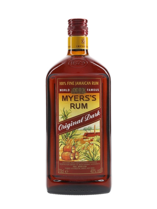 A bottle of Myers's Original Dark Rum, blended and bottled in Jamaica by Fred L Mayers & Son.