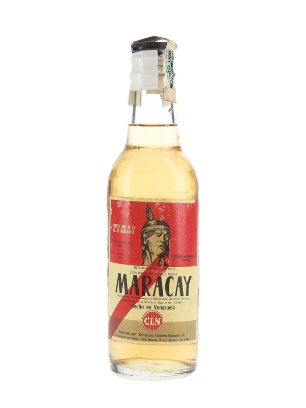 A 35cl bottle of Maracay Bebida Espirituosa Seca from Venezuela, a dry spirit drink macerated in oak casks.