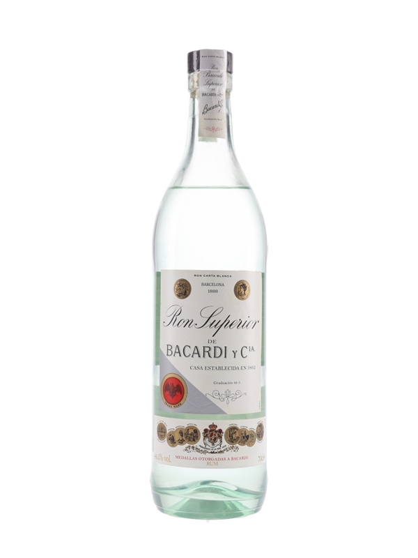 A bottle of Bacardi Superior Limited Edition rum produced in Mexico, blended by Maestro de Ron Bacardi G.Piñera Guevara to replicate the flavour profile of the original Bacardi rums, and bottled at 44.5%.