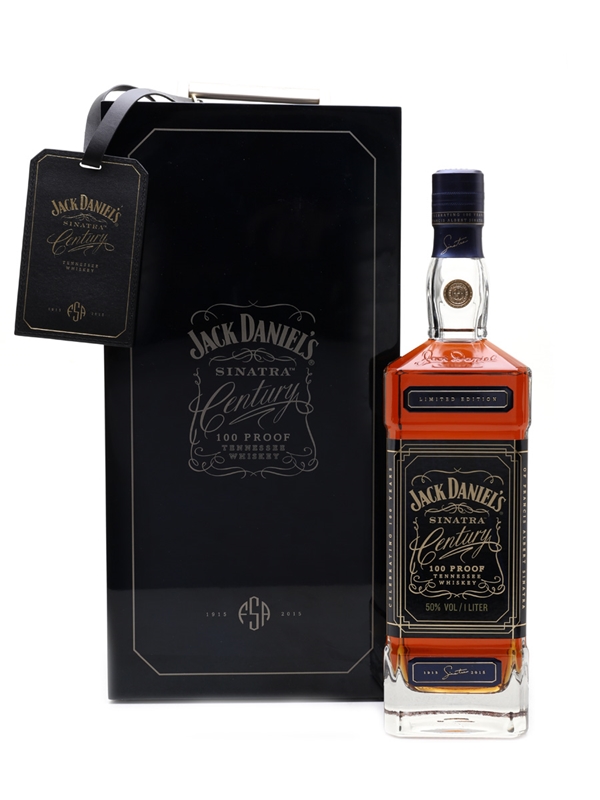 A limited edition bottle of Jack Daniel's celebrating the life of Frank Sinatra, who would have turned 100 in 2015. Bottled at 100 proof from 100 casks specially selected by master distiller Jeff Arnett.