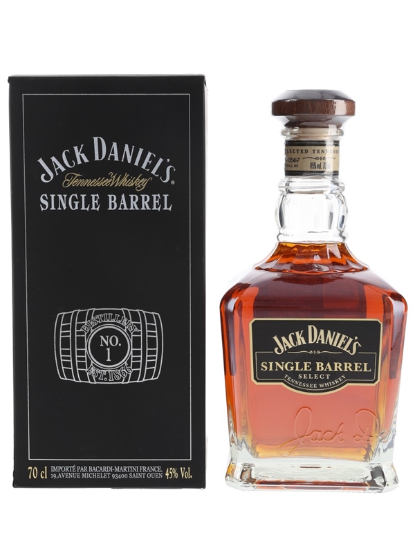 A bottle of Jack Daniel's Single Barrel Select Tennessee Whiskey, hand selected and bottled on 6 February 2010. This was imported to France by Bacardi-Martini.