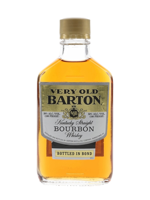 A 20cl bottle of Barton Very Old Bonded In Bond Kentucky Straight Bourbon Whiskey. The bottling code indicates the bottle was made in 1992.