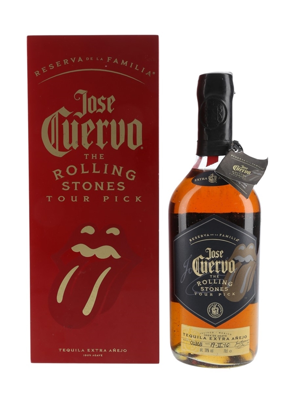 A bottle of Jose Cuervo Reserva de la Familia Tequila Extra Añejo. This was released in collaboration with The Rolling Stones, who have been fans of Jose Cuervo Tequila since it became the band's drink of choice on its 1972 tour of North America, which became known as the 'Tequila Tour'.