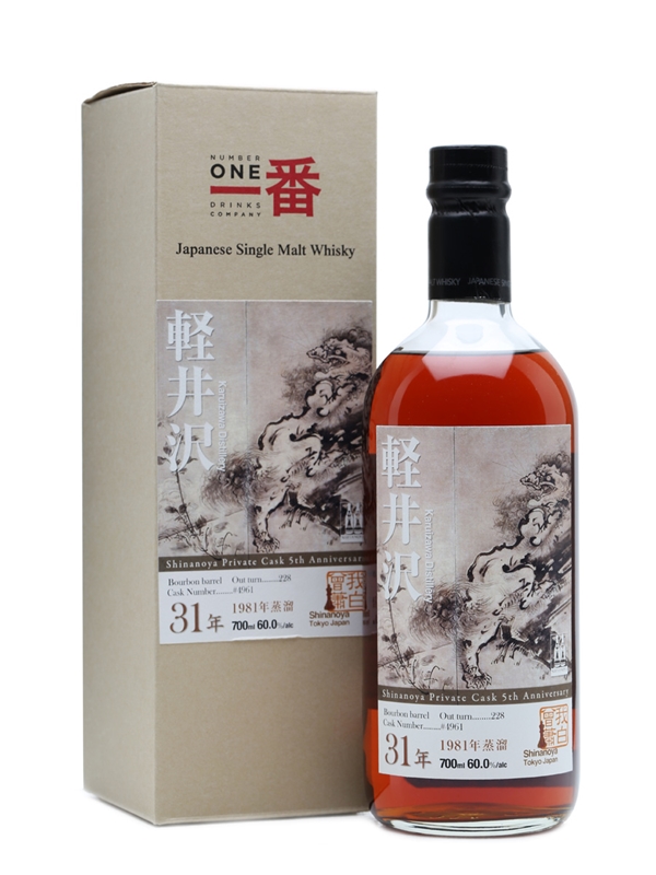 A 1981 vintage Karuizawa, bottled by the distillery for Tokyo wine and spirits shop Shinanoya to celebrate the fifth anniversary of their Private Cask range. Aged for 31 years in an ex-bourbon barrel, this was released in 2012.